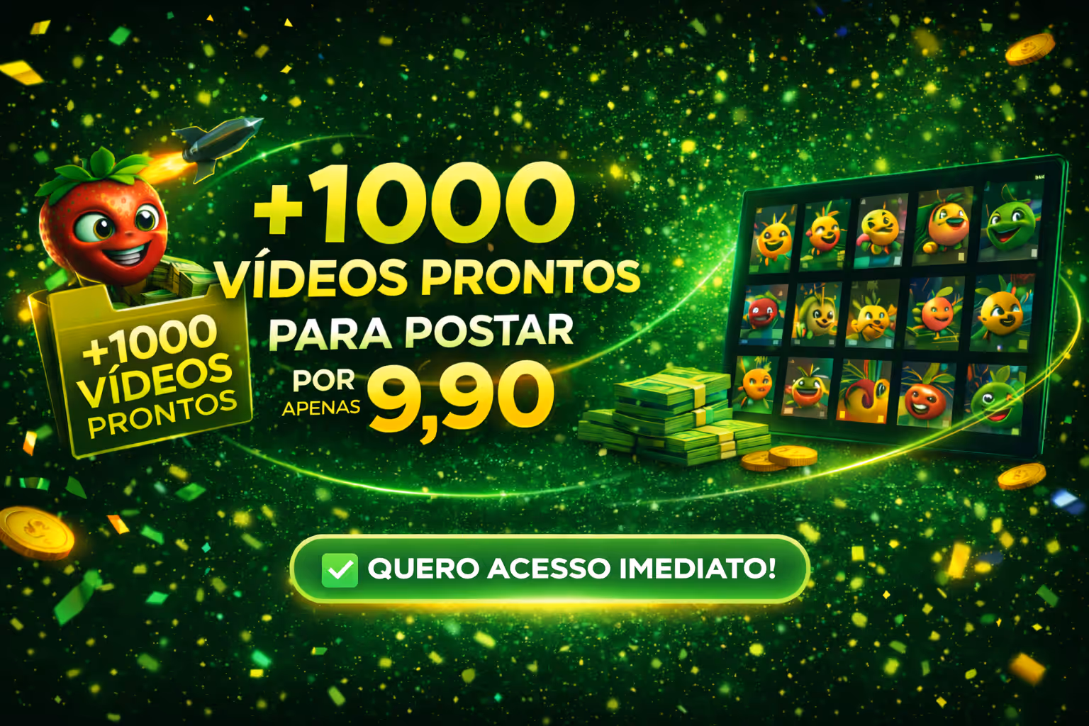 Dobre seu arsenal com mais 1000 vídeos prontos para postar.